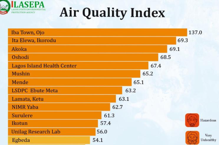 The Lagos State Environmental Protection Agency (LASEPA) on Wednesday released a report of areas in Lagos with unhealthy air quality.