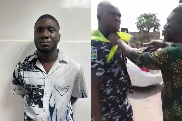 The arrest follows a disturbing video clip where Akintayo was caught assaulting an officer. He further proceeded to attack a second officer who was recording the incident.