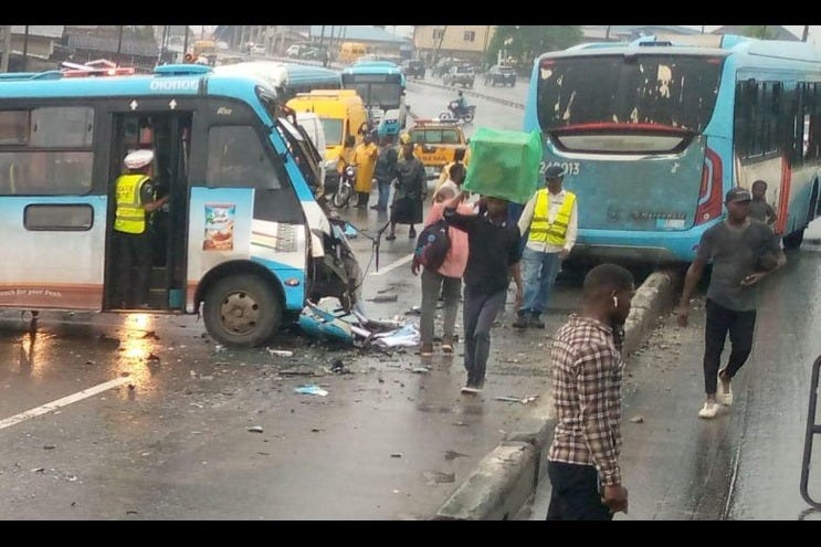 Two BRT buses on Tuesday morning collided around Ile Zik area of Ikeja local government in Lagos state.