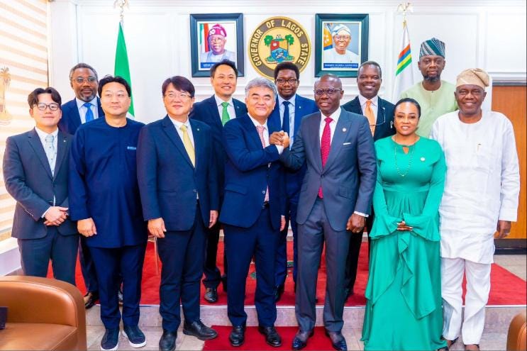 The Lagos State Governor, Babajide Sanwo-Olu has received the Daewoo Engineering and Construction Nigeria Limited's management, led by Group Chairman Mr. Jung Won Ju on Monday at the Lagos House in Ikeja.